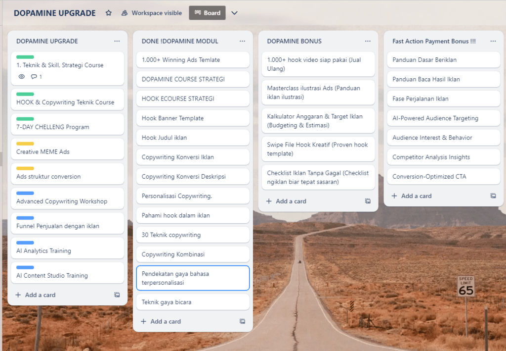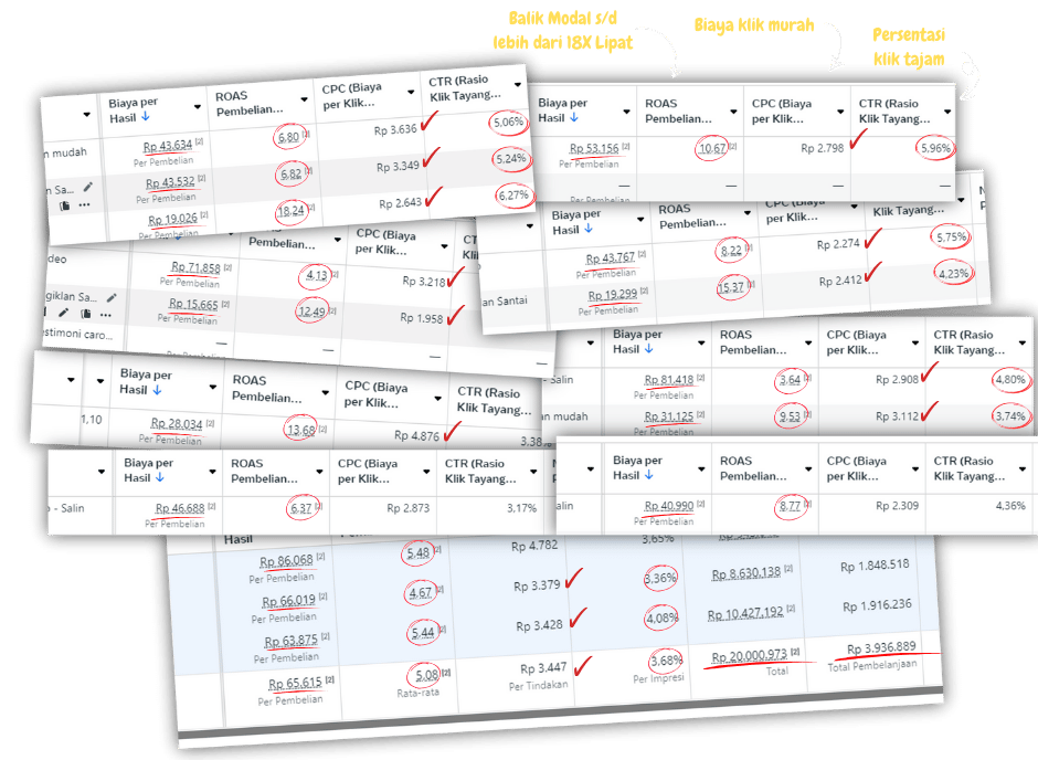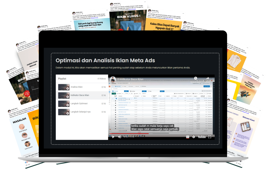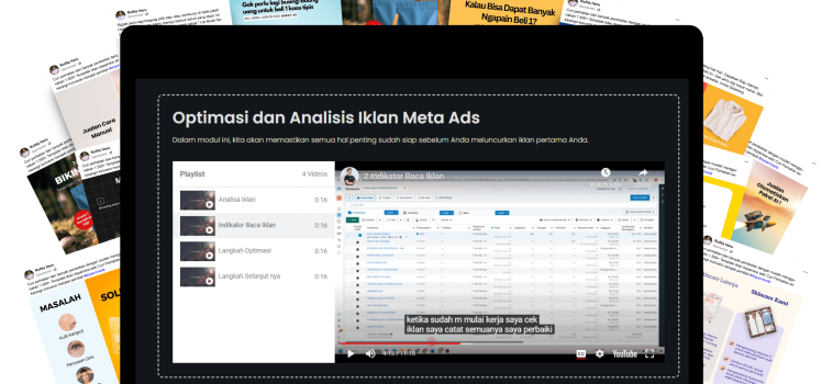 Semua solusi sudah siap digunakan. “Mulai dari winning ads template, Copywriting Konversi, Strategi, Landing page, Alat pendukung, Sampai dengan ecourse telah di sediakan.”