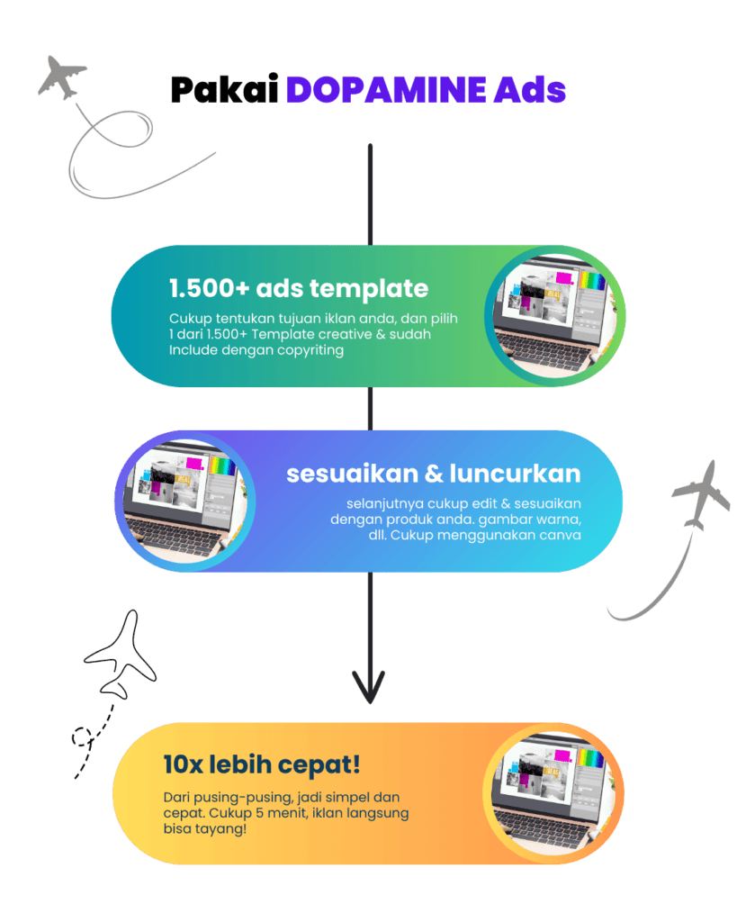DOPAMINE ADS menggabungkan kekuatan kreativitas dengan teknologi AI untuk menciptakan template yang tidak hanya menarik tetapi juga menghasilkan konversi tinggi.